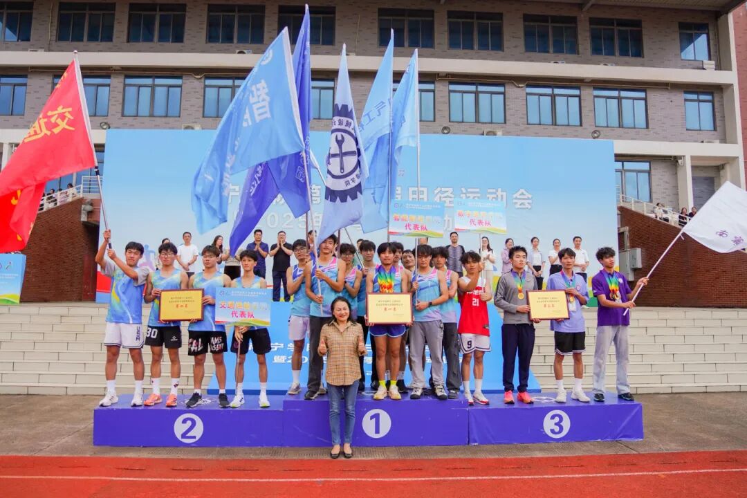 党委副书记、副校长韦粤桂为学生男子团体总分前三名的智能制造学院、交通运输学院、数字经济学院颁奖。