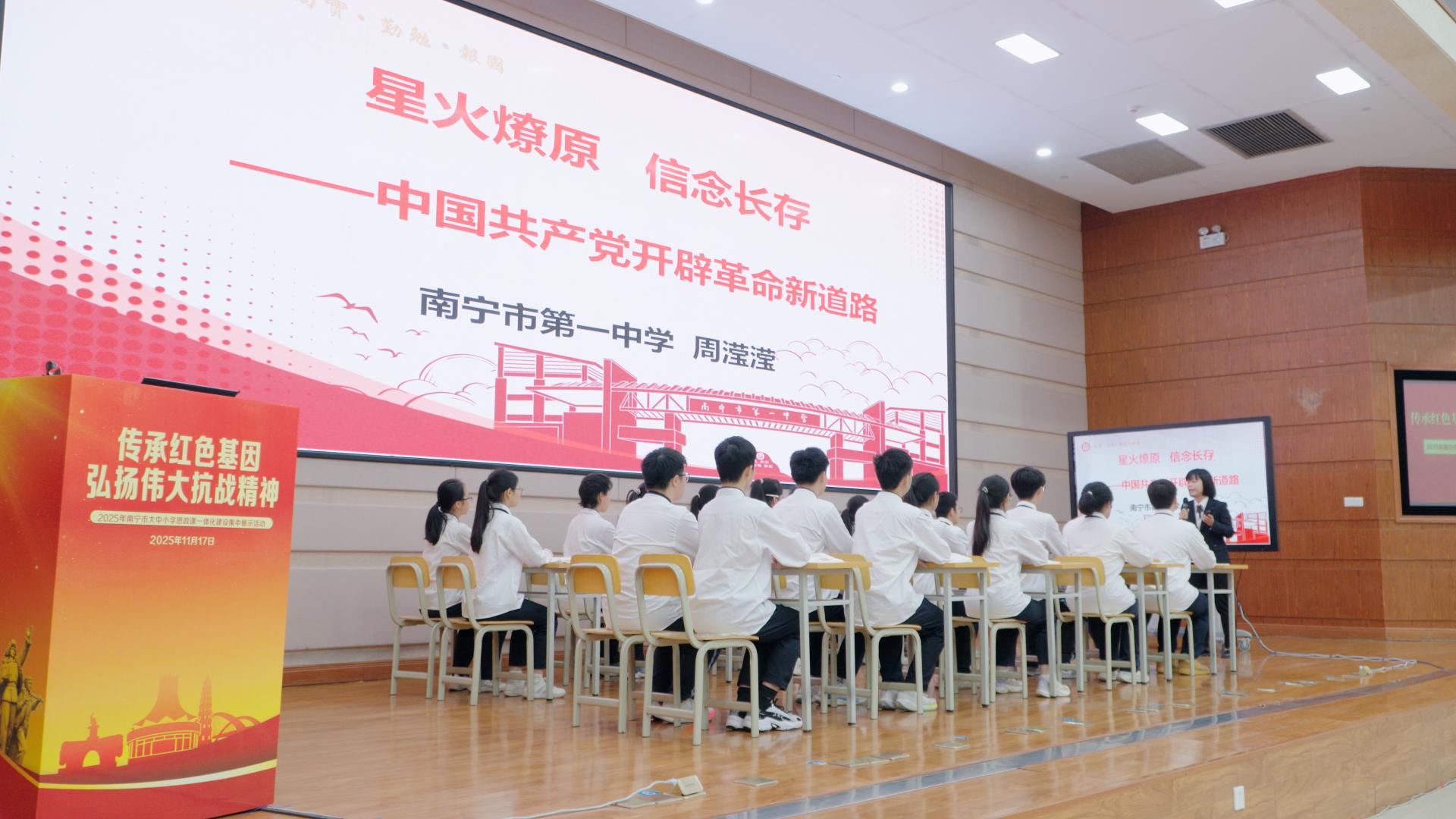 为深入学习贯彻习近平新时代中国特色社会主义思想和党的二十届四中全会精神,统筹推进大中小学思政课一体化建设,11月17日,由中共南宁市委教育工委、南宁市教育局、共青团南宁市委、南宁市少工委、南宁学院共同主办的“传承红色基因,弘扬伟大抗战精神”2025年南宁市大中小学思政课一体化建设集中展示活动在南宁学院图书馆报告厅举行。