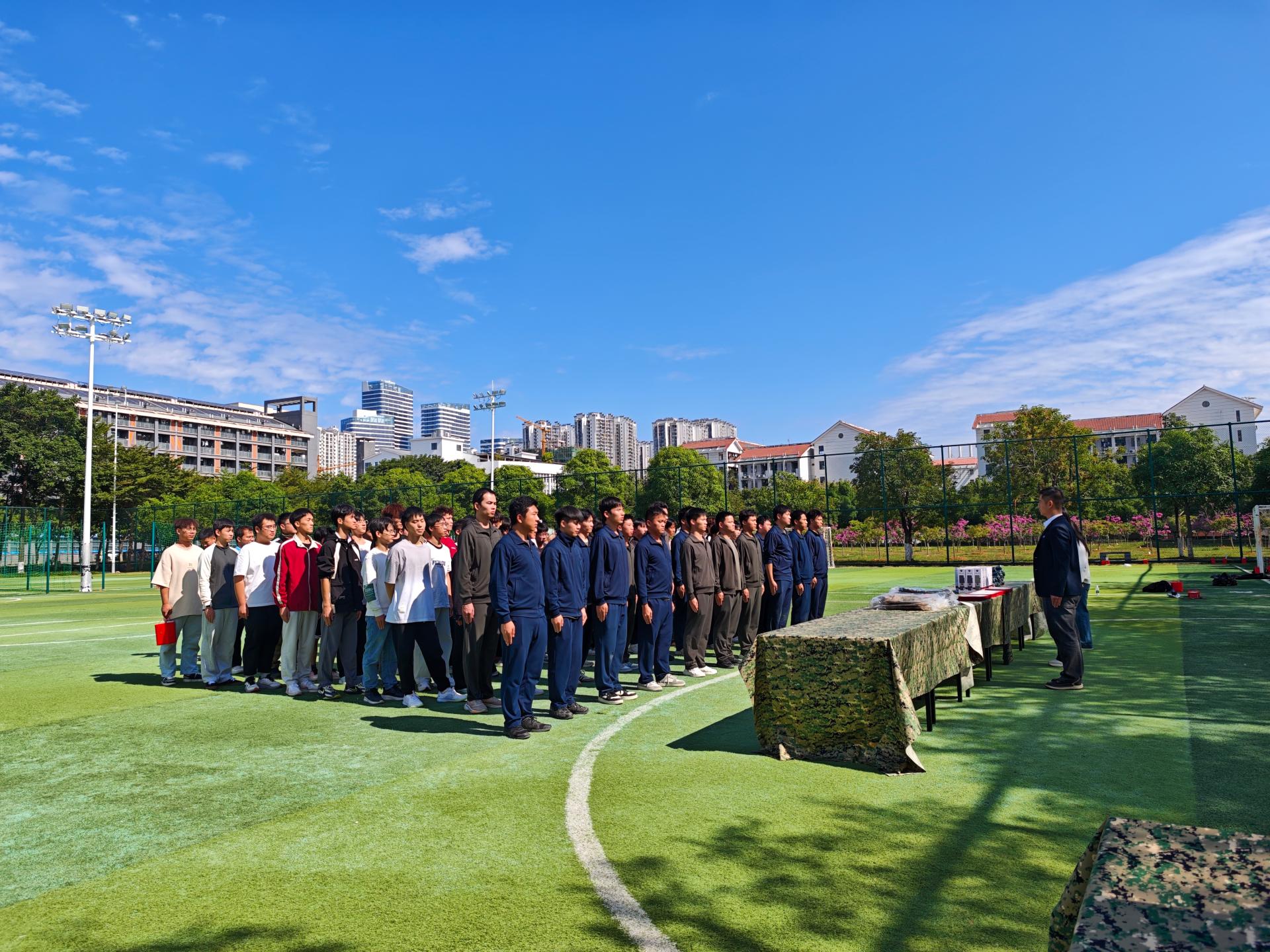 11月22日清晨,南宁学院小足球场旌旗猎猎、士气昂扬,不孤军魂社首期“军事体验日”活动正式启动。作为学校深化国防教育、践行“五育并举”育人理念的重要举措,本次活动以“沉浸式军事体验+精准征兵动员”为主线,吸引近百名学子踊跃参与,在校园内掀起了心系国防、强军有我的青春热潮。