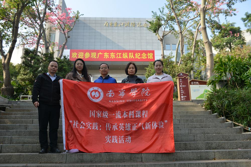 课程团队与南宁学院深圳校友会秘书长江永洲在叶挺纪念馆合影