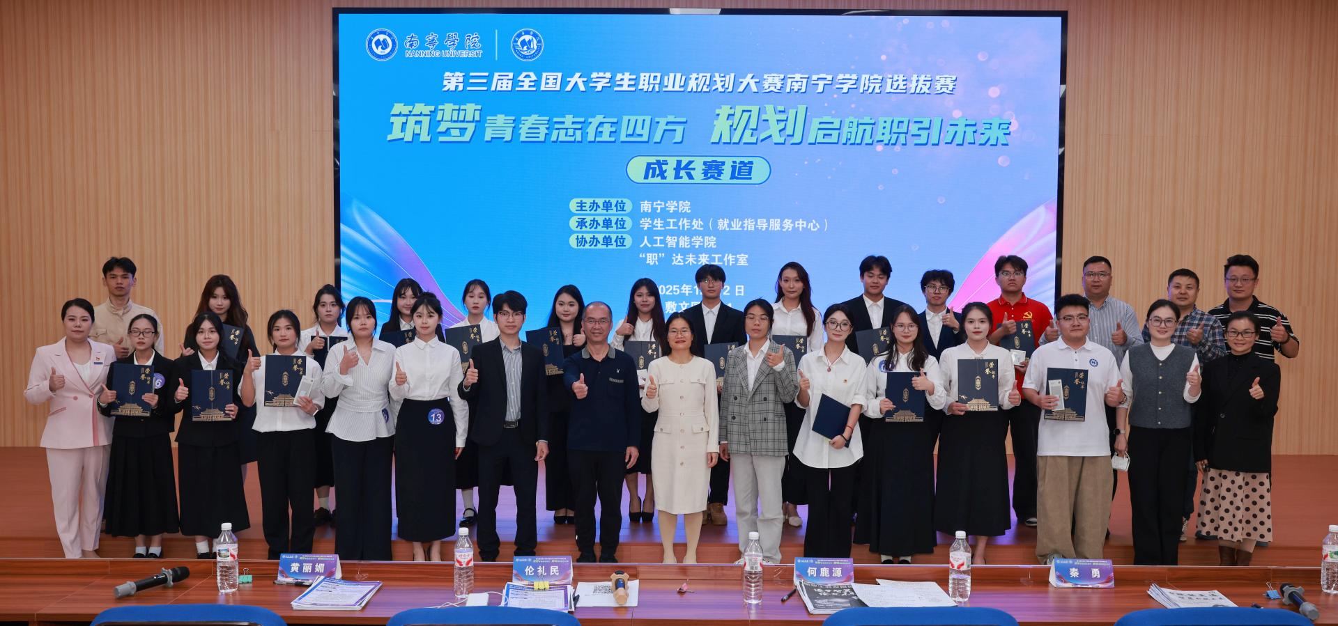 为贯彻落实党中央、国务院关于高校毕业生就业工作的决策部署,加强高校生涯教育和就业指导,增强大学生职业规划意识,指导其及早做好就业准备,促进高校毕业生高质量充分就业。12月2日晚,由南宁学院主办,南宁学院“职”达未来工作室、南宁学院人工智能学院承办的“筑梦青春志在四方 规划启航职引未来”——第三届全国大学生职业规划大赛南宁学院选拔赛(成长赛道)在敷文园E-104教室隆重举行。