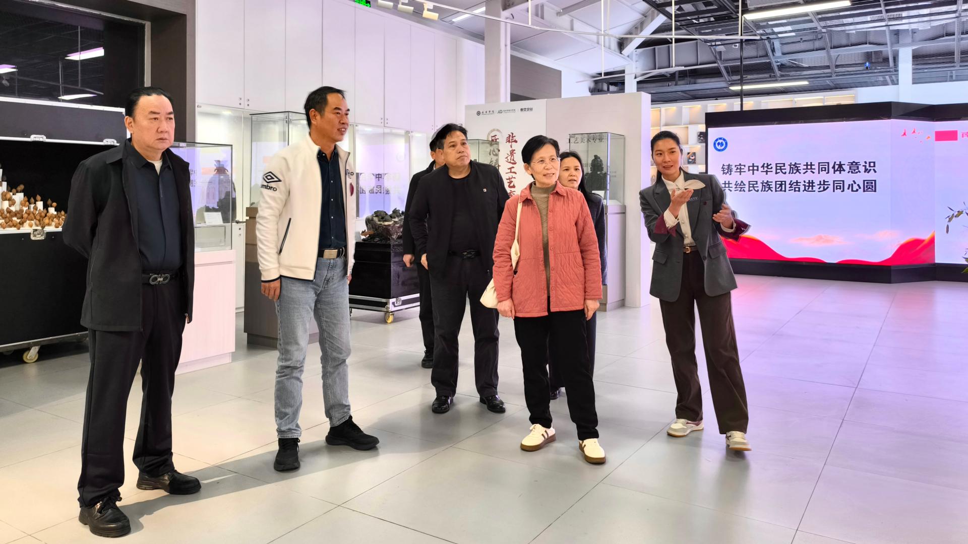 评审期间,南宁学院校长李栋学、副校长王宁章陪同秦敬德书记、郑军里校长等专家,结合评审工作实地调研学校展览场地及校园文化环境,围绕后续展览的筹备组织、场地规划与布展设计等环节展开交流,为展览的顺利举办进行前瞻性准备。专家们对学校为本届作品展所做的筹备工作予以肯定,并就进一步优化展览效果、深化美育融合提出了指导意见。