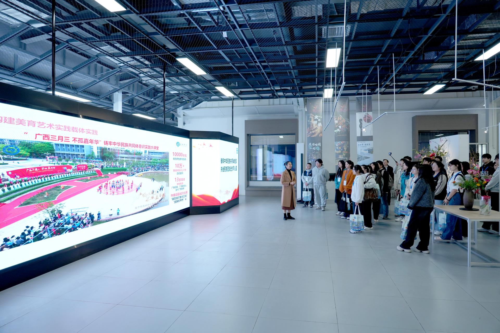 仪式结束后,全体参会人员共同合影留念。重庆人文科技学院师生实地参观了南宁学院包括敷文艺创美育中心、ICT产教融合创新基地、华为数字技术产业学院及英雄精神传承体验馆在内的四个特色育人基地,开启了为期六天的沉浸式学习之旅。
