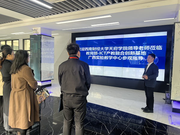 李锐一行先后参观了我校华为数字技术产业学院、智能制造研创中心、南宁学院工程结构综合试验平台大厅和教育部ICT产教融合基地,听取了相关负责同志关于我校应用技能人才培养、产教融合发展情况的介绍。
