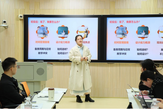 许文婷老师立足备赛效率与实操技巧,分享了团队协作与工具赋能的实用方法。她提出,备赛过程中“独木不成林”,团队多视角的打磨能有效弥补个人视野盲区,通过“1主讲+N观察员”的模式,既能夯实课程的专业性与科学性,又能打磨课堂的吸引力与感染力;同时善用AI工具与专业学术软件,能有效解决案例设计、内容优化、前沿挖掘等难题,但工具只是辅助,教学的科学性、学术性与价值观引领始终需要教师牢牢把控。她还建议教师将竞赛打磨的优质教学资源模块化融入日常课堂,让竞赛成果持续赋能教学实效,实现教学能力的长效提升。