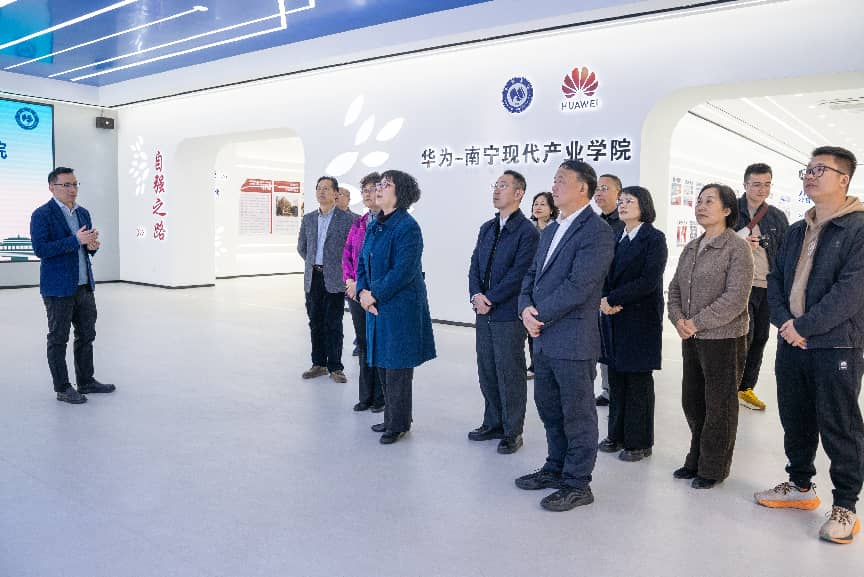 调研组先后走访了华为数字技术产业学院、“孙中山与广西”展示馆及校史馆,全方位了解南宁学院的校园风貌、办学特色与文化底蕴。在华为产业学院,调研组详细了解了学校产教融合、校企合作的创新模式与实践成果;在“孙中山与广西”展示馆,通过听取讲解、重温历史等方式,深切感悟革命先辈坚定的理想信念和崇高的革命精神;在校史馆,调研组深入感受了南宁学院的发展历程以及取得的成就。