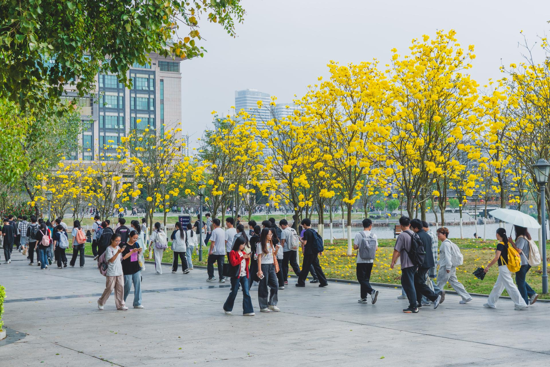 校园环境清洁专项行动同步开展,工作人员清理卫生死角、修剪绿植景观,校园内桃花盛开、黄花风铃花海绽放,不孤湖畔草木葱茏、景致宜人,整个校园以整洁雅致的崭新面貌开启新学期。