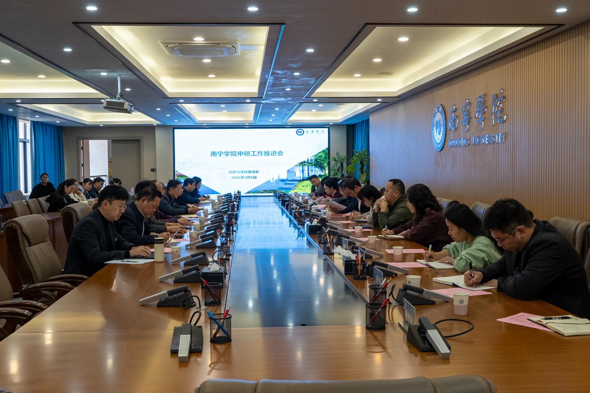 会上,李陶深副校长首先传达了自治区教育厅2026年学位授权审核工作座谈会的核心会议精神,并解读了本次学位授权审核的最新政策要求、审核标准和工作重点,为学校下一步申硕工作划定了方向。随后,科研与学科建设处张艳雯处长作申硕工作专项汇报,围绕学校新增硕士学位授予单位和授权点申报工作推进情况展开详细说明,同时对2026-2028年新增硕士学位授权点立项建设工作进行系统部署,梳理了现阶段工作中的重点、难点问题,并提出下一步的针对性的推进思路和实施举措。