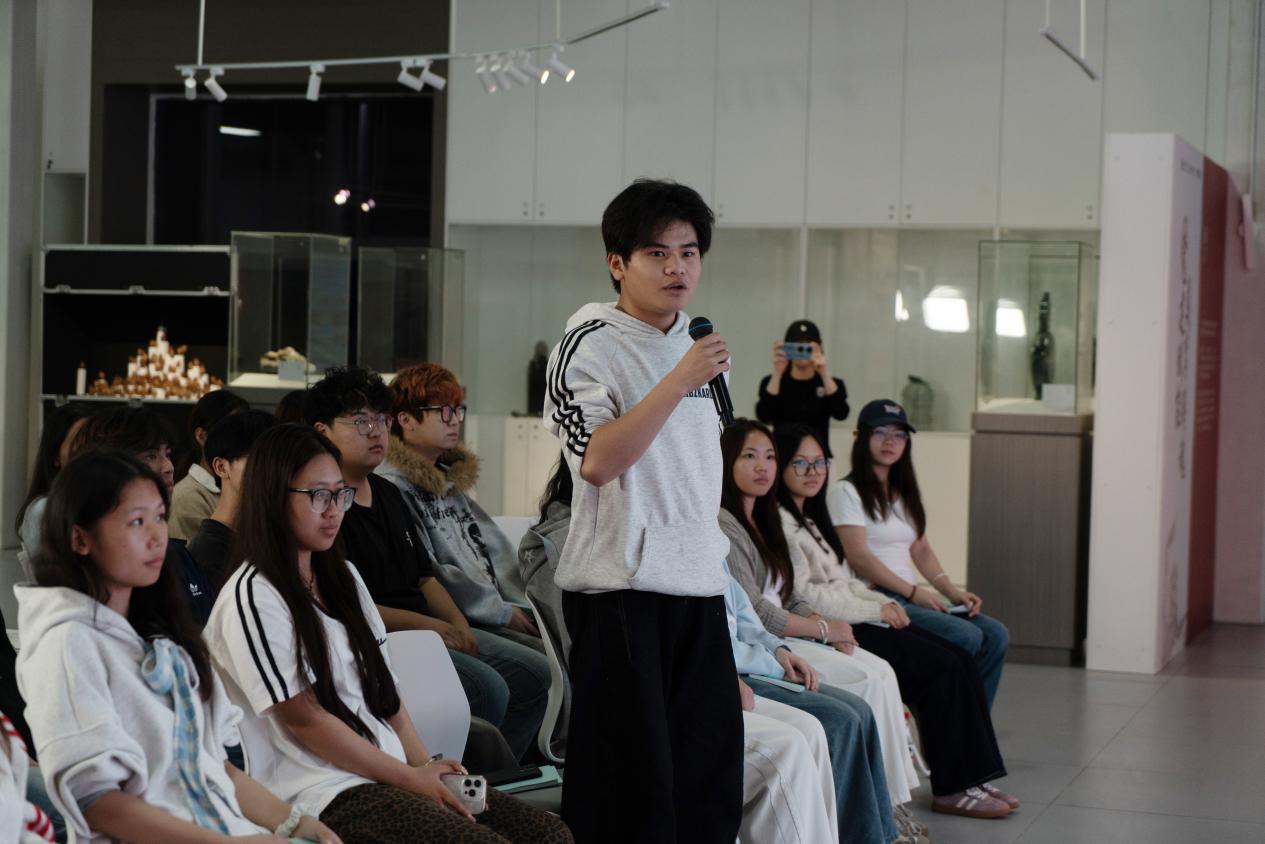 互动环节中,学员们踊跃举手、积极提问,围绕花婆节文创产品开发、民俗场景活化、非遗青年传承路径等话题,与苏凯精、孙世雄两位嘉宾展开深入交流。大家结合自身专业所长,从视觉设计、新媒体传播等角度探讨非遗创新表达的可能性,现场氛围热烈而专注。在一问一答的思想碰撞中,同学们不仅深化了对壮族抢花炮民俗文化与传统花炮制作工艺的理解,更找到了将本土非遗与艺术创作相结合的实践方向。
