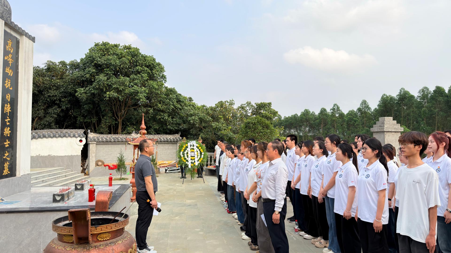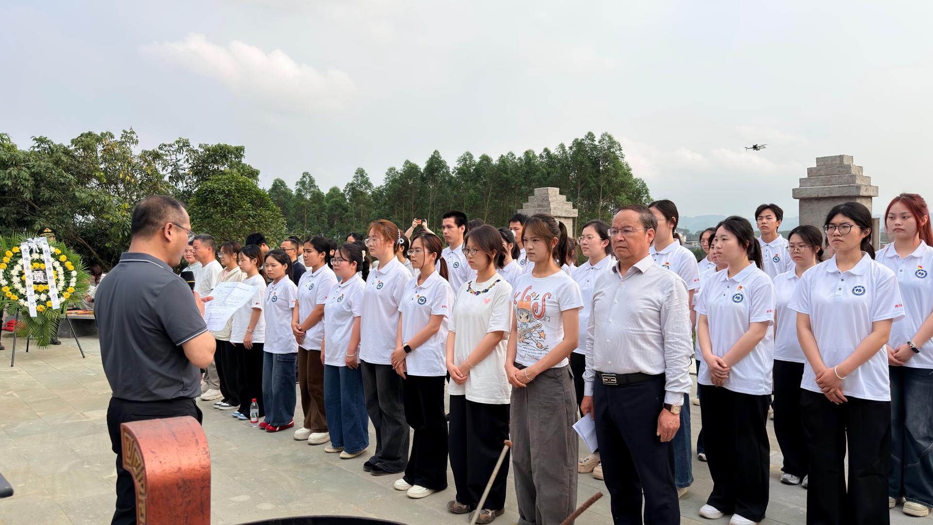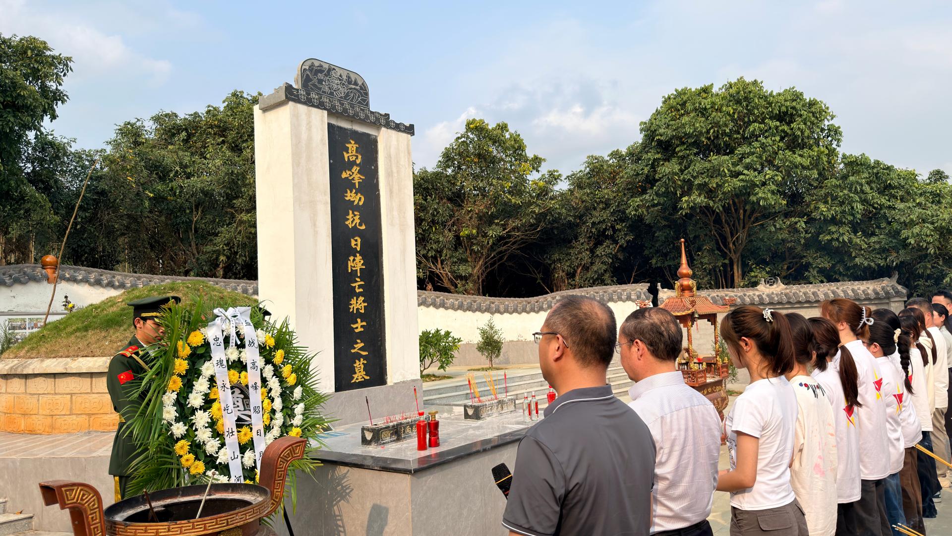 清明前夕,松柏凝翠。3月27日,南宁学院50余名师生走进高峰坳抗战遗址,在抗日阵亡将士墓前开展了一场特殊的“行走的思政课”。这是学校国家级一流本科课程《社会实践:传承英雄正气新体验》的一次沉浸式教学实践,校团委、马克思主义学院、课程团队三方联动,组织“青马工程”学员、校团委、学生会、国旗护卫队等团学组织学生干部代表参加。