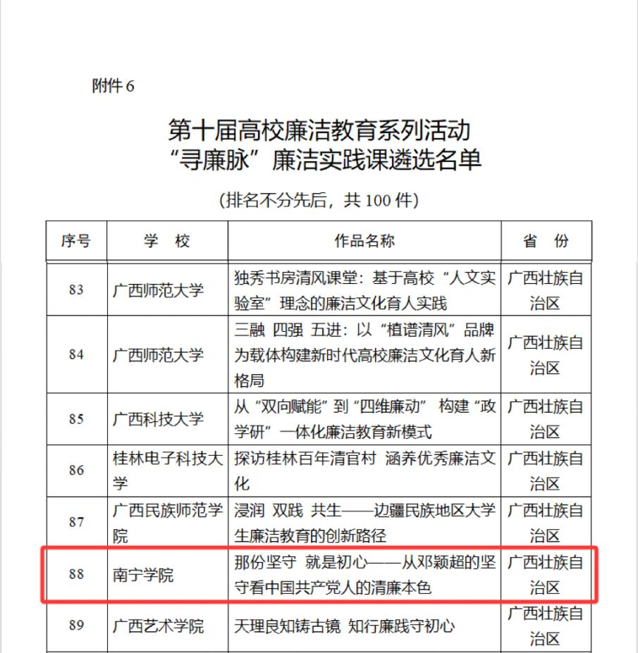 近年来,学校党委始终以“六廉”为抓手,搭建起多层次、立体化的廉洁教育平台,将清廉学校建设融入全面从严治党、管党治校和立德树人全过程。此次两项作品入选全国优秀名单,是对学校廉洁文化建设成效的充分肯定。2026年是清廉学校建设提质增效三年行动的收官之年,学校将持续深化“六廉并举”,不断丰富廉洁文化教育形式,推动清廉学校建设提质增效,为学校高质量发展营造风清气正的育人环境。(纪委办公室(监察室)、马克思主义学院供稿 文/叶小媚、温佳琦 一审一校:叶小媚、温佳琦 二审二校:高锦奎 三审三校:卢柳青)