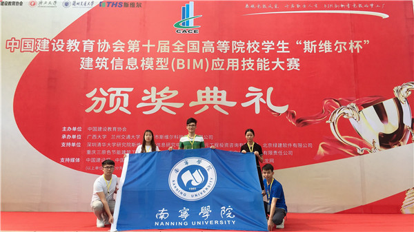 5月12日,由中国建设教育协会主办的第十届全国高等院校学生“斯维尔杯”建筑信息模型(BIM)应用技能大赛总决赛正式落下帷幕。南宁学院代表队在本次赛事中喜获本科组全能奖三等奖、工程设计专项三等奖、绿色建筑专项三等奖、工程管理专项三等奖的好成绩。决赛代表队由土木与建筑工程学院土木工程专业冯学鑫、覃丹霞、方茵、曾永嘉、卢炳东5名同学组成,他们在指导教师沈建增、黄家聪、杨汉宁的悉心指导下脱颖而出。
