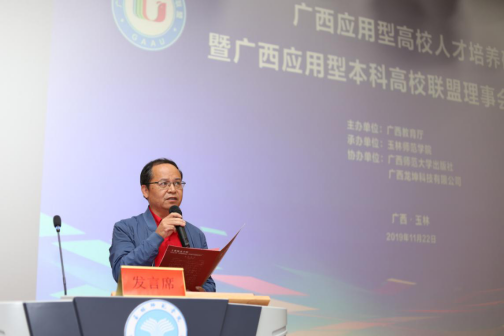 11月21-23日学校陈雄章副校长率队赴玉林师范学院参加广西应用型高校人才培养研讨会暨广西应用型本科高校联盟理事会换届选举会议。作为联盟秘书长,陈雄章副校长主持了广西应用型本科高校联盟换届选举会议,并在会议论坛上作总结发言。同时,学校以主题发言和宣传展板的形式,在会上分享了南宁学院应用型人才培养的主要举措与成效,得到兄弟院校的高度评价与肯定。
