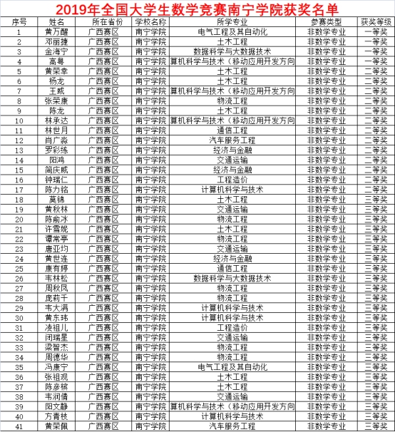 【喜讯】南宁学院学子在第十一届全国大学生数学竞赛(广西赛区)中喜获佳绩
