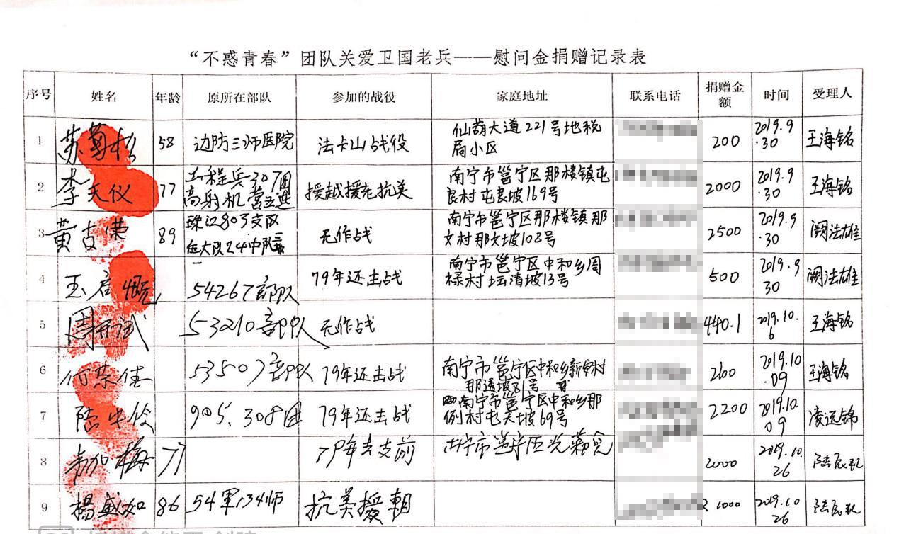 当不惑青春团队通过网络筹款平台发现一名来自广西灌阳的南疆卫国老兵刘全军患重病亟需医药费时,立即从“广西慈善总会·不惑青春关爱南疆卫国老兵基金”申请大病专项救助,及时为他送去关爱。