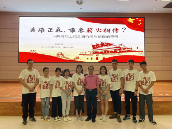 在今年的9月30日,第六个国家烈士纪念日之际,学校陈雄章副校长与往年一样在学校图书馆报告厅开展了一场《英雄正气 谁来薪火相传?》的讲座,讲座震撼人心、催人泪下。作为一名研究红色历史的学者,陈雄章教授用他的实际行动连续20载关爱南疆卫国老兵及传承红色精神,在他的带动和影响下,学校18级视觉传达设计的陆辰艳、阙法雄等同学创建了“不惑青春英雄精神传承社”,启动了“不惑青春”关爱南疆卫国老兵及传承英雄精神的红色公益项目。该项目通过采访南疆卫国老兵、记录英雄故事、形成鲜活的影音及文字资料,让英雄故事、红色精神代代相传;打造英雄兵哥IP进行授权、开发IP衍生产品进行义卖、开展英雄精神拓展培训、设立专项关爱基金,多渠道解决公益项目“造血”问题,协助政府改善南疆卫国老兵及烈士遗属的生活。