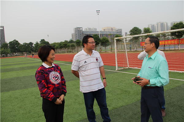 南宁学院通识教育学院杨小凤院长、蓝志军副院长到运动场检查体测工作