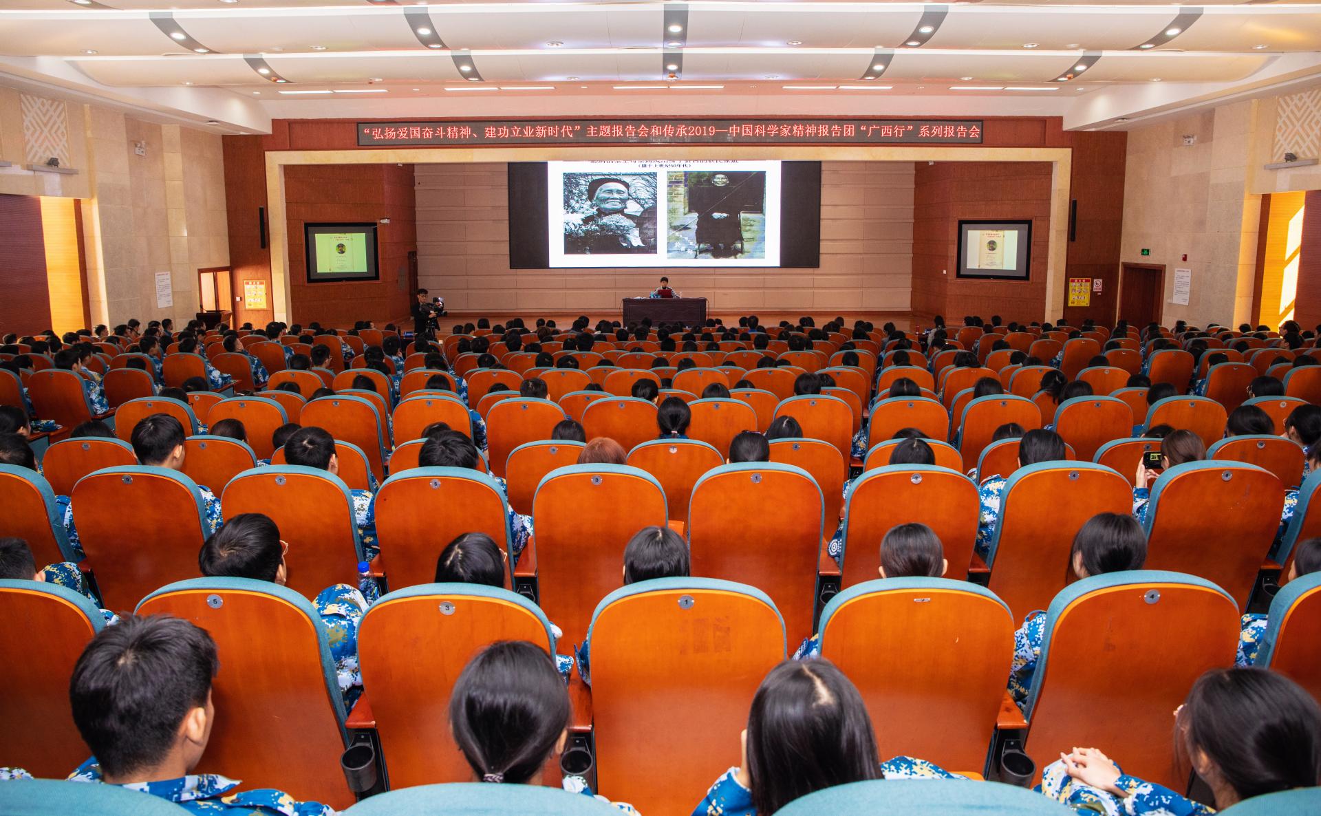 为在全校师生中牢牢树立爱国奋斗、无私奉献的家国情怀,传承老一辈科学家的高贵品格和道德情操。12月3日上午,学校邀请到革命烈士澎湃之孙女、中国第一任核潜艇总设计师彭士禄之女、传承2019——中国科学家精神报告团广西行”专家彭洁教授到校开展“弘扬爱国奋斗精神、建功立业新时代”报告会活动。学校党政办、组织部、宣传部、学工部、马克思主义学院、产学研处主要负责同志及各二级学院党总支副书记、全体辅导员及学生代表500余人聆听了报告。报告会由学校副校长龚击主持。