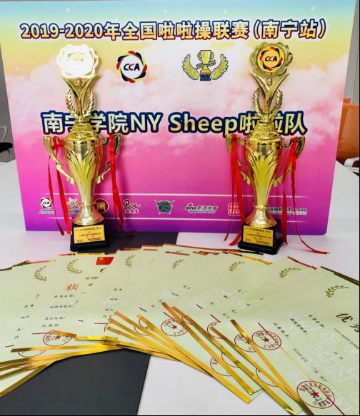 据悉,2019-2020年全国啦啦操联赛(南宁站)是广西举办的最高啦啦操赛事之一,本次大赛普通高校组包括了全区各地数十所高校,参赛队伍多,经过激烈角逐南宁学院NY Sheep啦啦队获得2019-2020年全国啦啦操冠军赛暨2019年中国体操节参赛资格,该赛事是全国啦啦操最高赛事之一,南宁学院NY Sheep啦啦队将继续努力,砥砺前行、勇夺桂冠!(通识教育学院供稿  文/图 杨凯茵、龚敏)