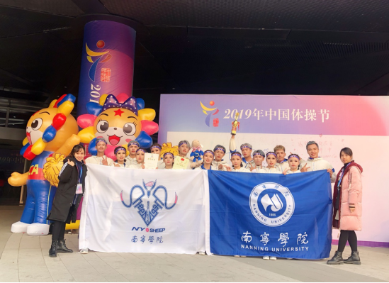 由国家体育总局体操运动管理中心、山东省体育局、日照市人民政府主办,全国啦啦操委员会、日照市体育局承办的2019-2020中国体操节暨全国啦啦操冠军赛在日照市国际博览中心举行。2019年12月19-23日,由南宁学院通识教育学院体育教研室派出的南宁学院NY Sheep啦啦操代表队,经历拼搏与努力,力敌各大强队,最终取得公开青年丙组大集体街舞规定动作、公开青年丙组双人街舞自选动作双冠、公开青年丙组双人花球自选动作第四名的好成绩!
