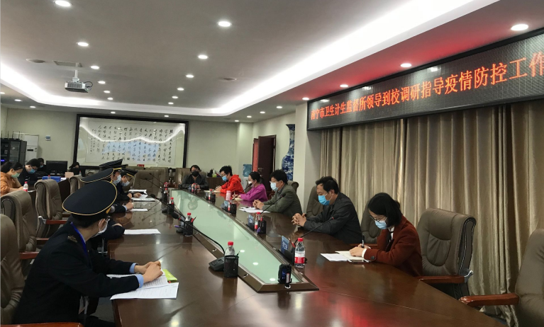 2月24日上午,南宁市卫生计生监督所卫生监督五科科长王君明一行六人到学校检查疫情防控工作并召开座谈会。学校疫情防控工作领导小组副组长、校党委副书记、纪委书记覃存民陪同检查,学校办公室、人事处、学工处、后勤基建处负责同志与工作人员参加座谈。