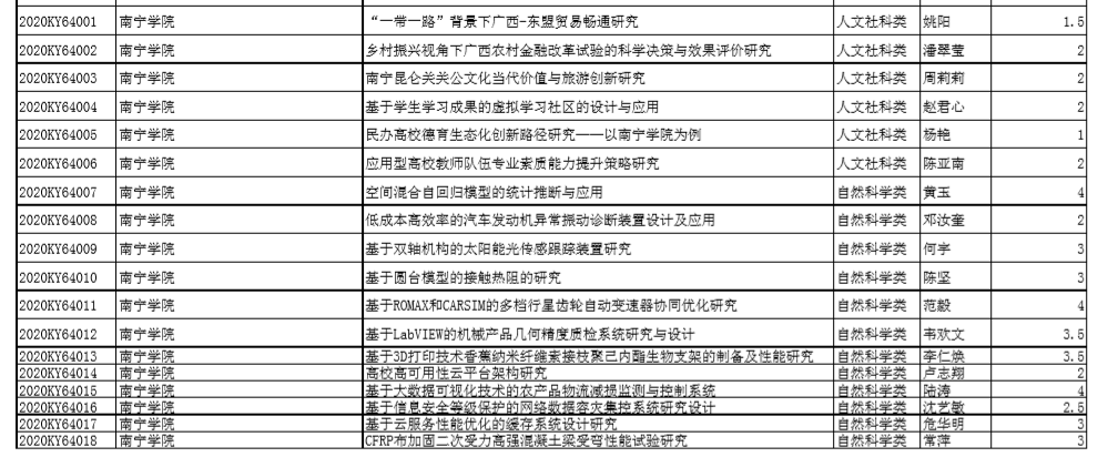 近日,由自治区教育厅组织专家评审的2020年度广西高校中青年教师科研基础能力提升项目予以公布。根据《自治区教育厅关于公布2020年度广西高校中青年教师科研基础能力提升项目名单的通知》,南宁学院教师申报的30个项目获得2020年度广西高校中青年教师科研基础能力提升项目立项。