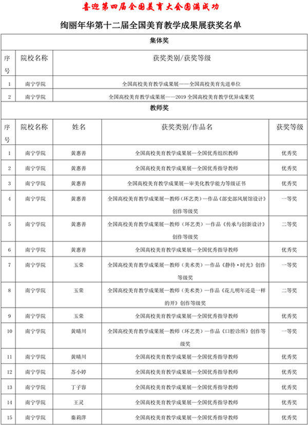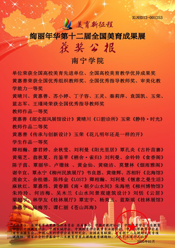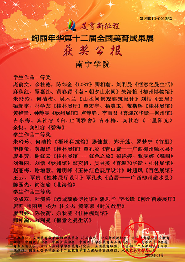 202049日,绚丽年华第十二届全国美育成果展获奖名单揭晓,学艺术设计学院师生参加本次比赛喜获国家级一、二、三等奖等佳绩。