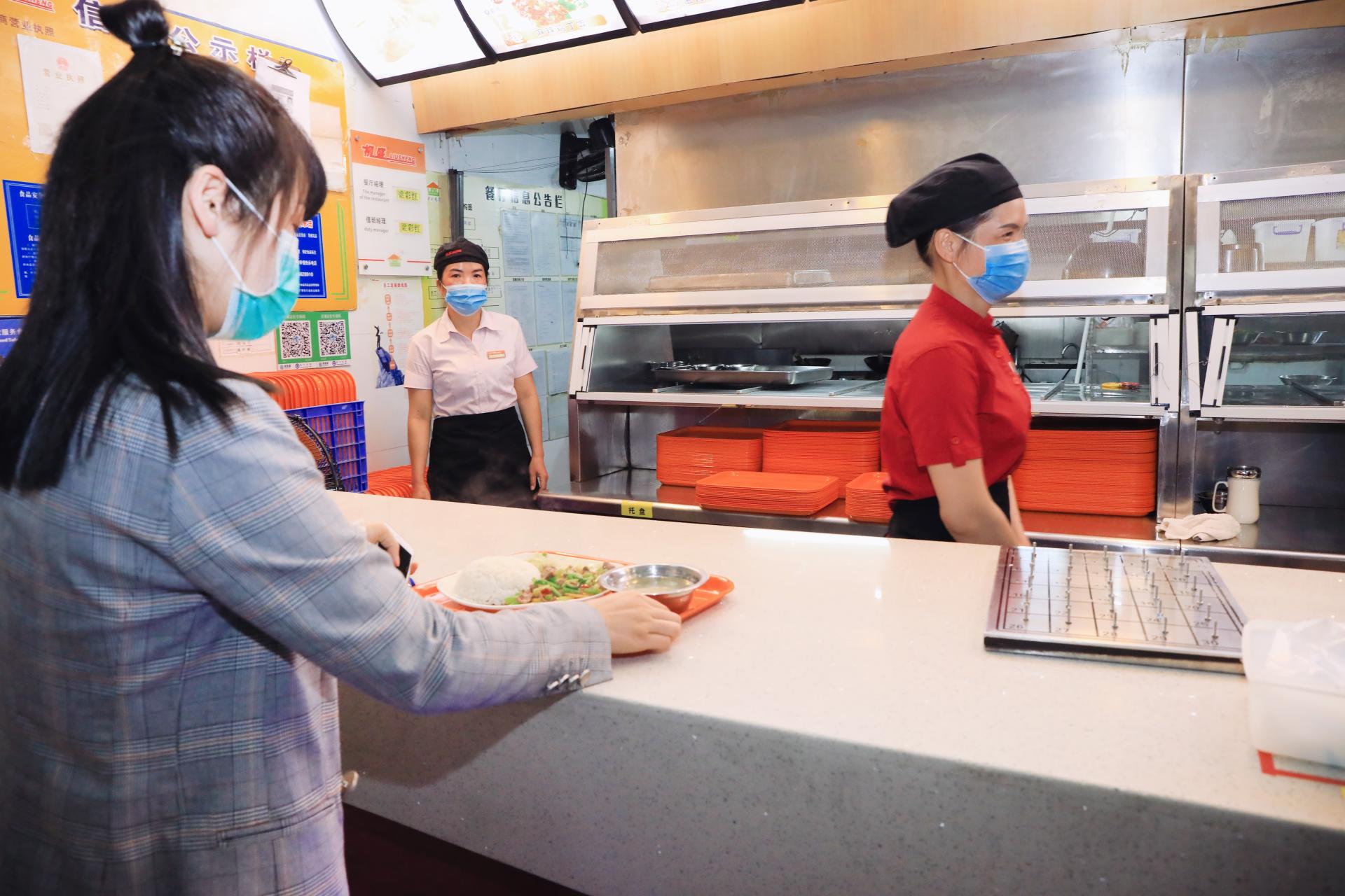 返校学生已吃到想念已久的可口饭菜
