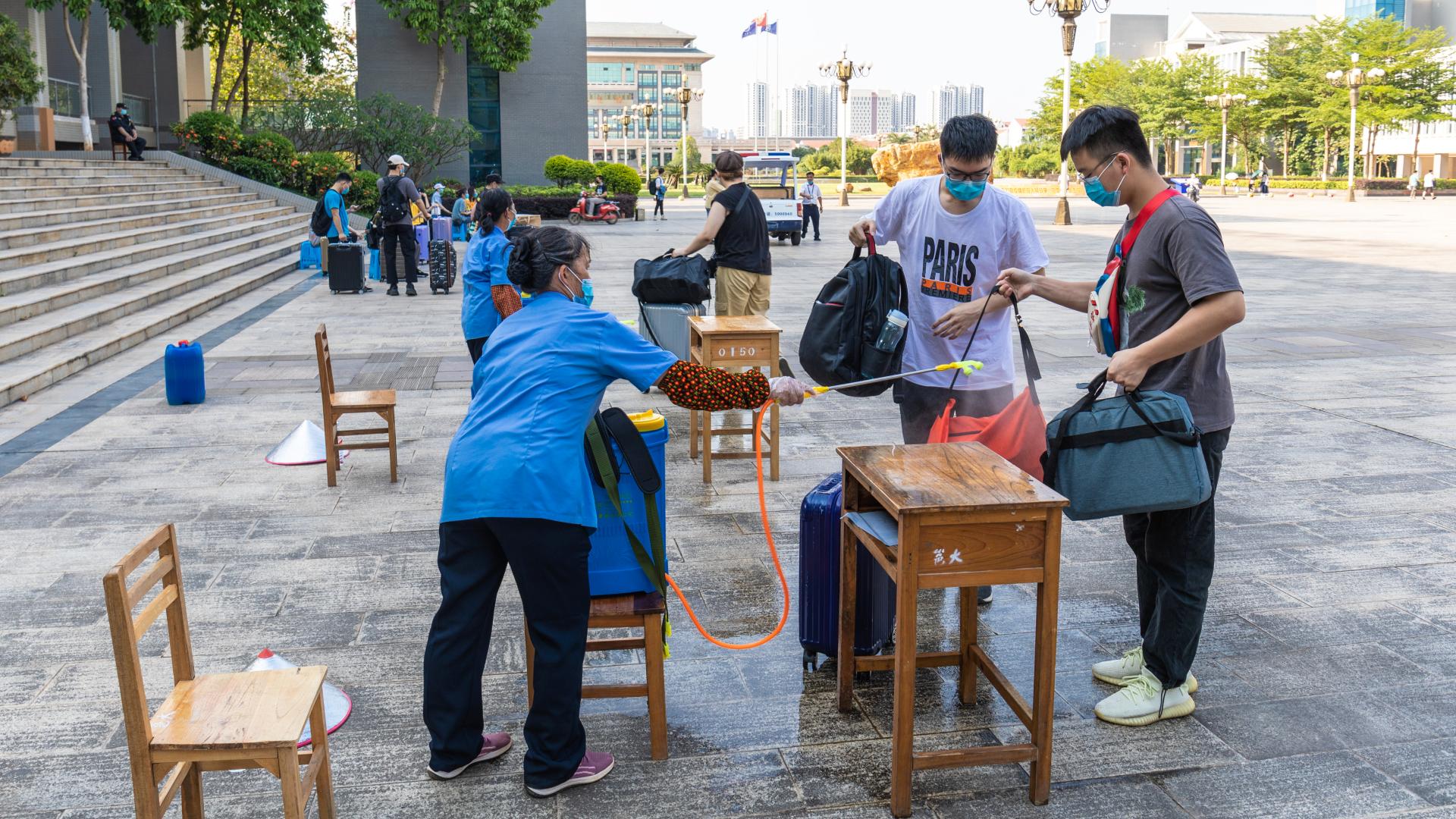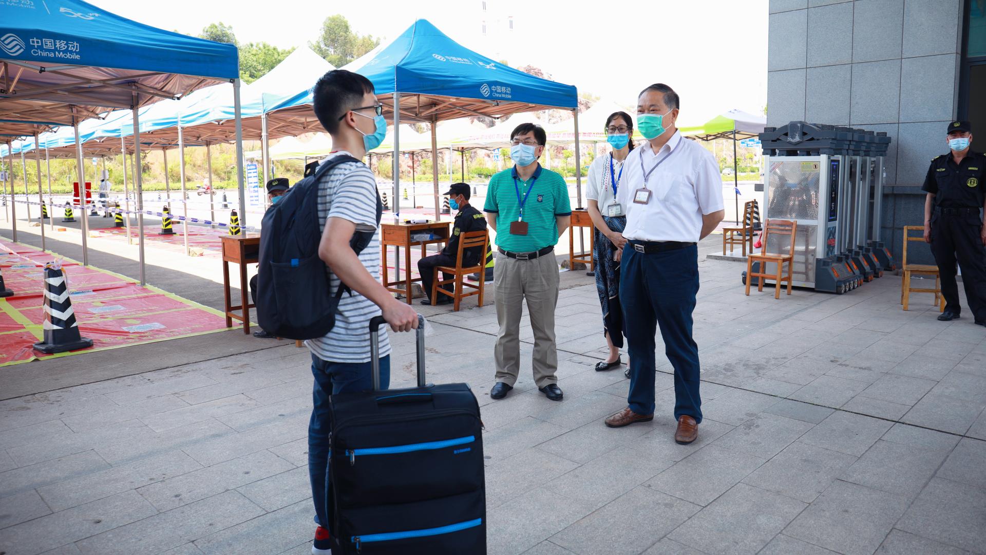 返校学生严格按照规定流程回到学校