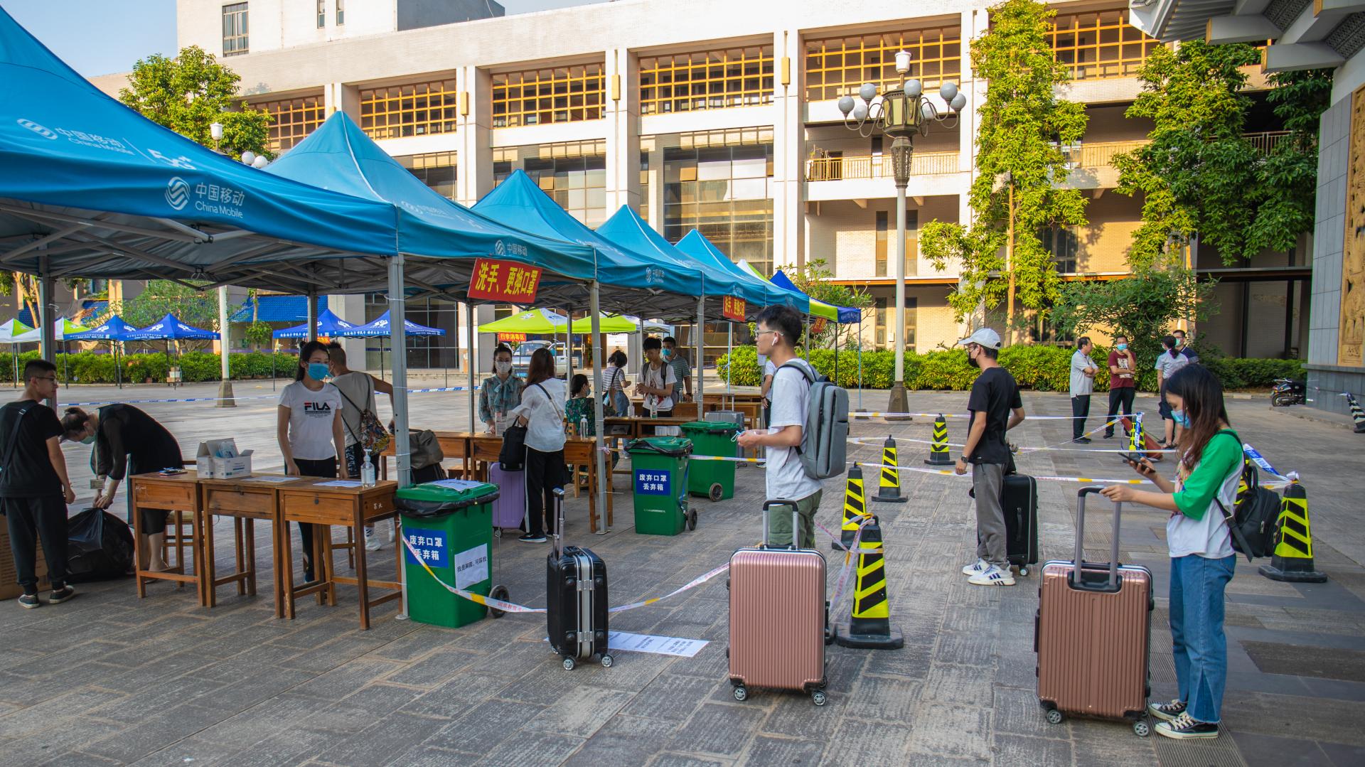 测温、扫码、洗手、更换口罩、行李消毒、钉钉签到,同学们按照规定流程进入校园。“欢迎同学们返校,这几天天气非常热,大家一路辛苦了。”在南大门入口,校领导与同学们亲切交谈。近日天气炎热,校领导殷切叮嘱大家要注意身体健康,保持宿舍通风透气;要科学合理安排学习和作息,加强身体锻炼。
