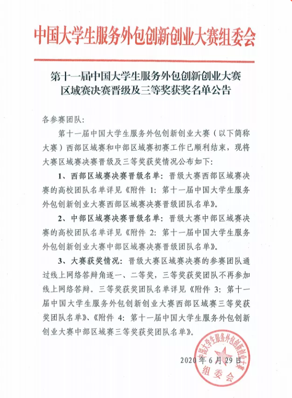 【喜讯】南宁学院在第十一届中国大学生服务外包创新创业大赛中荣获晋级