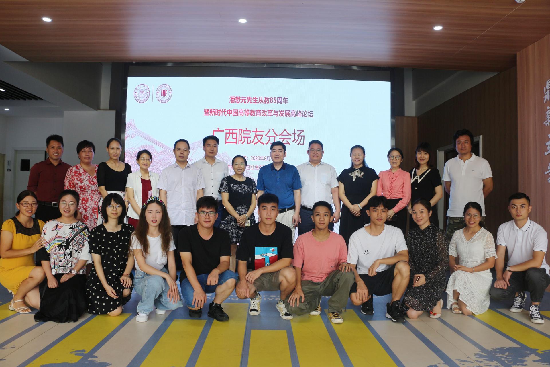 8月4日,值潘懋元教授百岁华诞,厦门大学举办“潘懋元教授从教85周年庆祝大会暨新时代中国高等教育改革与发展高峰论坛”,来自国家教育部、民盟中央、福建省委省政府、厦门市委市政府、中国教育学会、中国高等教育学、中国职业技术教育学会的领导和专家,北京大学、清华大学、天津大学等数十家高校知名学者参加活动。活动在北京、上海、广东等14个省市设立了线上分会场,广西分会场在南宁学院设立。来自广西师范大学、广西中医药大学、广西艺术学院等单位的厦门大学教育研究院毕业或在博士、硕士、访问学者及南宁学院师生代表参加了广西分会场的活动。