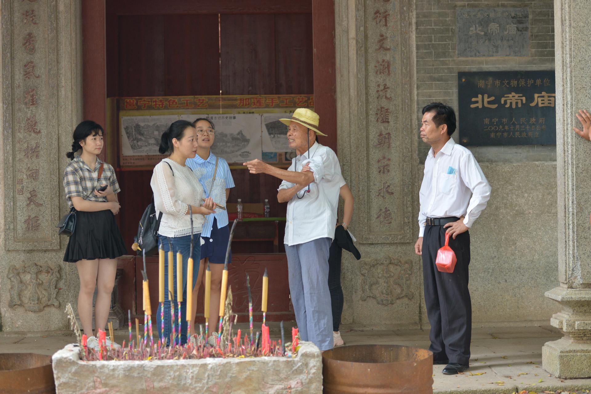 7月18日,《邕宁区传统宗祠建筑文化元素“三维”保护服务》项目主持人蓝志军带领袁国凯、樊原朱、黄彩兰老师及艺术设计学院2017级部分学生到南宁市邕宁区那连镇那连古圩、北帝庙、那连戏台和蒲庙镇五圣宫进行调研。