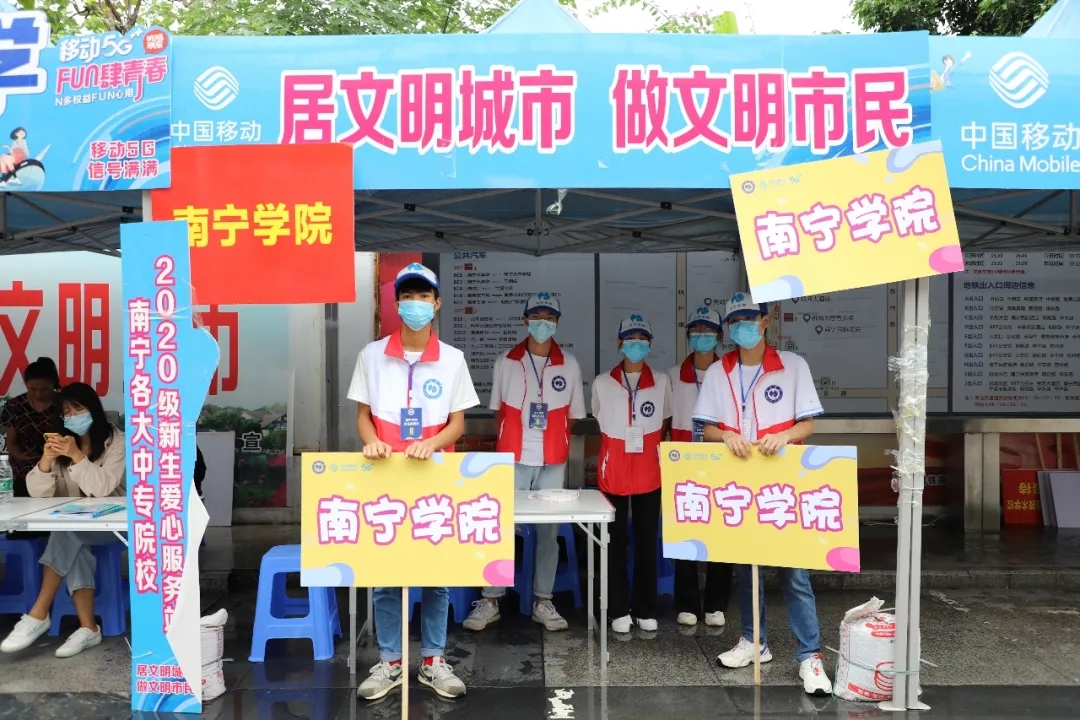 校园内,志愿者身着统一服装,分布在学校南大门、北门和各学院报到处,热情地为新生搬运行李,耐心地向新生提供引导、指示和答疑,迎接可爱的学弟学妹们。迎新期间,学校分别在南宁火车东站、琅东汽车客运站、南宁火车站设置接站点。在各接站点,志愿者们分工明确,有的举着引导牌,有的负责签到,有的帮忙搬运行李,各项接待服务工作有序开展。无论是在校内还是在各接站点,志愿者们在接待新生的过程中热情细致、服务周到,充分展现出一名“不孤”志愿者应有的“奉献、友爱、互助、进步”“不孤志愿服务”精神。