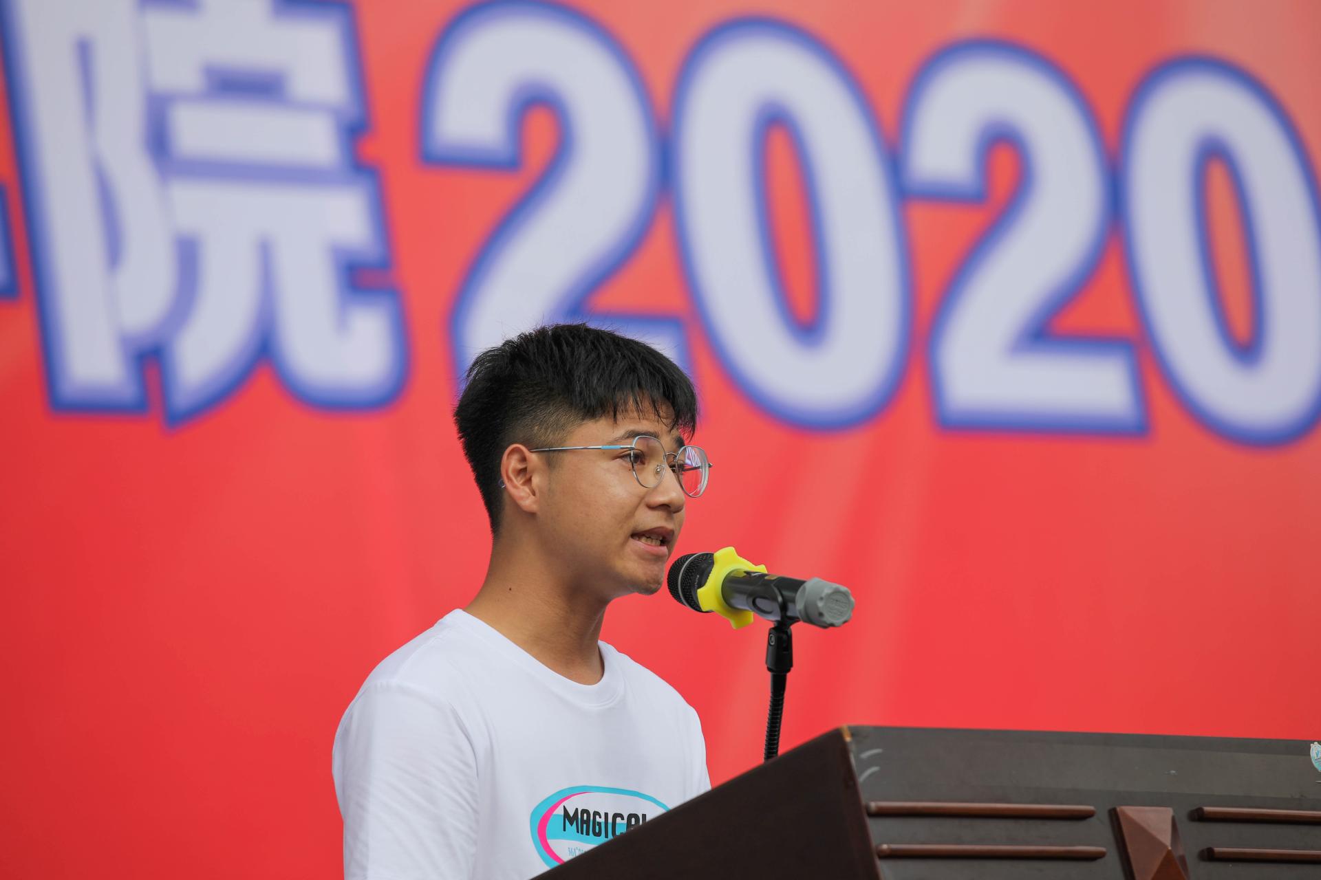来自会计与审计学院的学工科科长、分团委书记李隽宜老师作为教师代表发言。她嘱咐同学们要以德为本,明确责任,立志成才;要打好基础,勤于思考,热爱学习;要投身实践,全面发展,完善自我。作为在校生代表,来自管理学院2017级经济与金融专业4班的卢雪勉励学弟学妹们“用真善美来雕琢自己,用知识来丰润自己,不断提升自己的综合素质,努力使自己成为‘做人有品格、就业有本领、创业有能力、深造有基础、发展有后劲’的高素质应用型人才。”新生代表、来自土木与建筑工程学院2020级工程造价专业1班的陈庆模向全体新生倡议:秉承“自觉自强,厚德厚学”的校训,以高度的学习热情,扎实稳重的学习态度,乐观向上的生活心态,去开拓属于我们的一方大学天地。