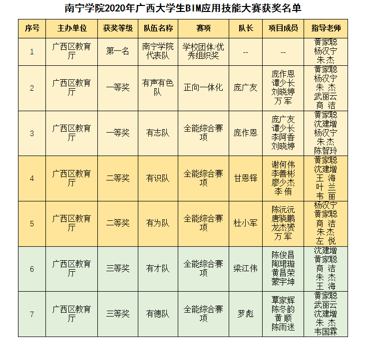 【喜讯】南宁学院在2020年广西大学生BIM应用技能大赛中喜获佳绩