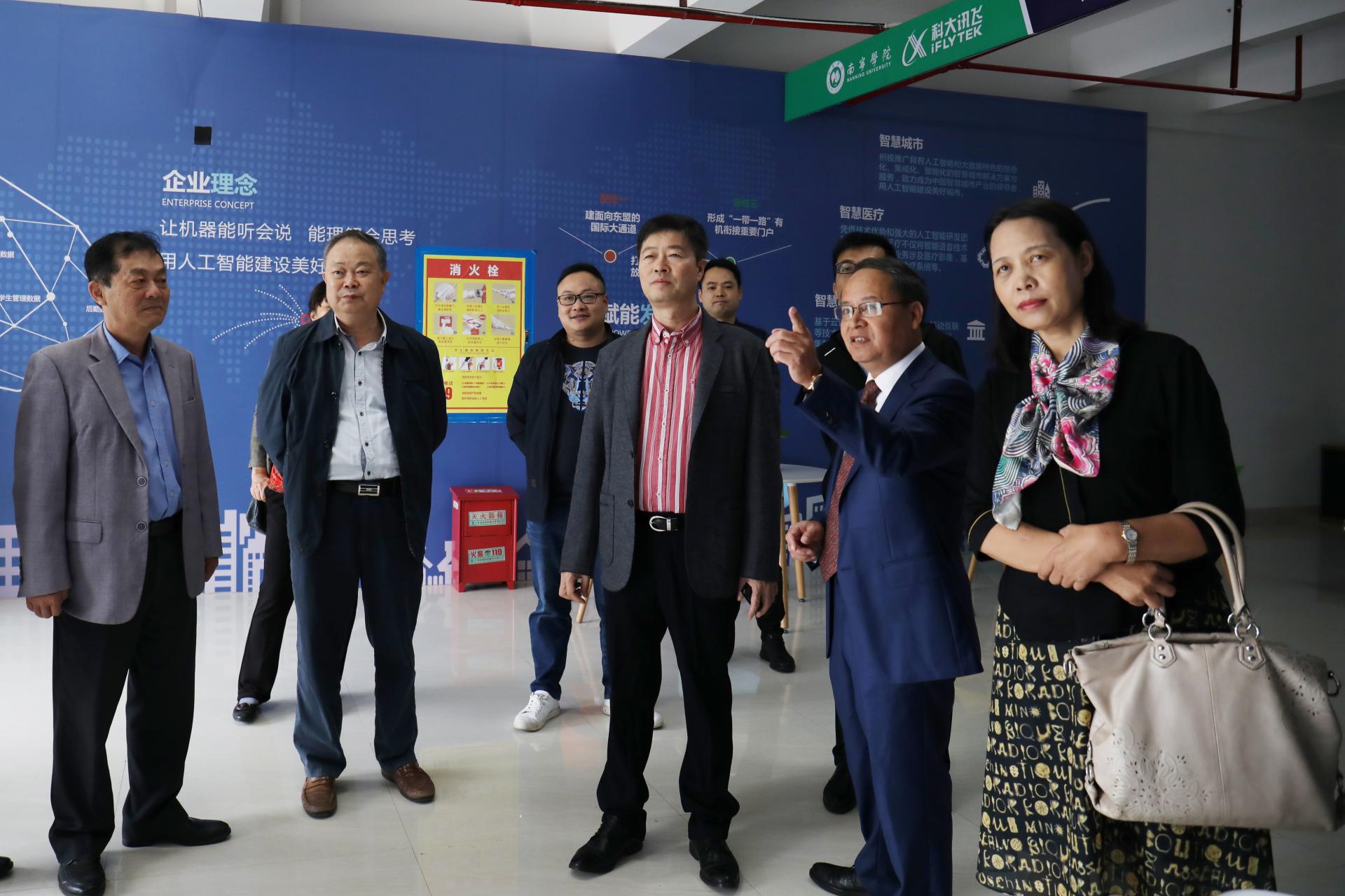 河北金融学院金融科技学院院长秦响应、金融谷总裁李建军、金融谷战略发展总监刘文静科大讯飞高教业务副总经理胡江院、京津翼大区客户经理罗海峰,南宁学院信息工程学院院长阳妮、副院长管卫利,科大讯飞人工智能学院副院长兰红星参加调研交流活动。(党政办供稿  文/黄鼎芹  图/李锦泳  通讯社)