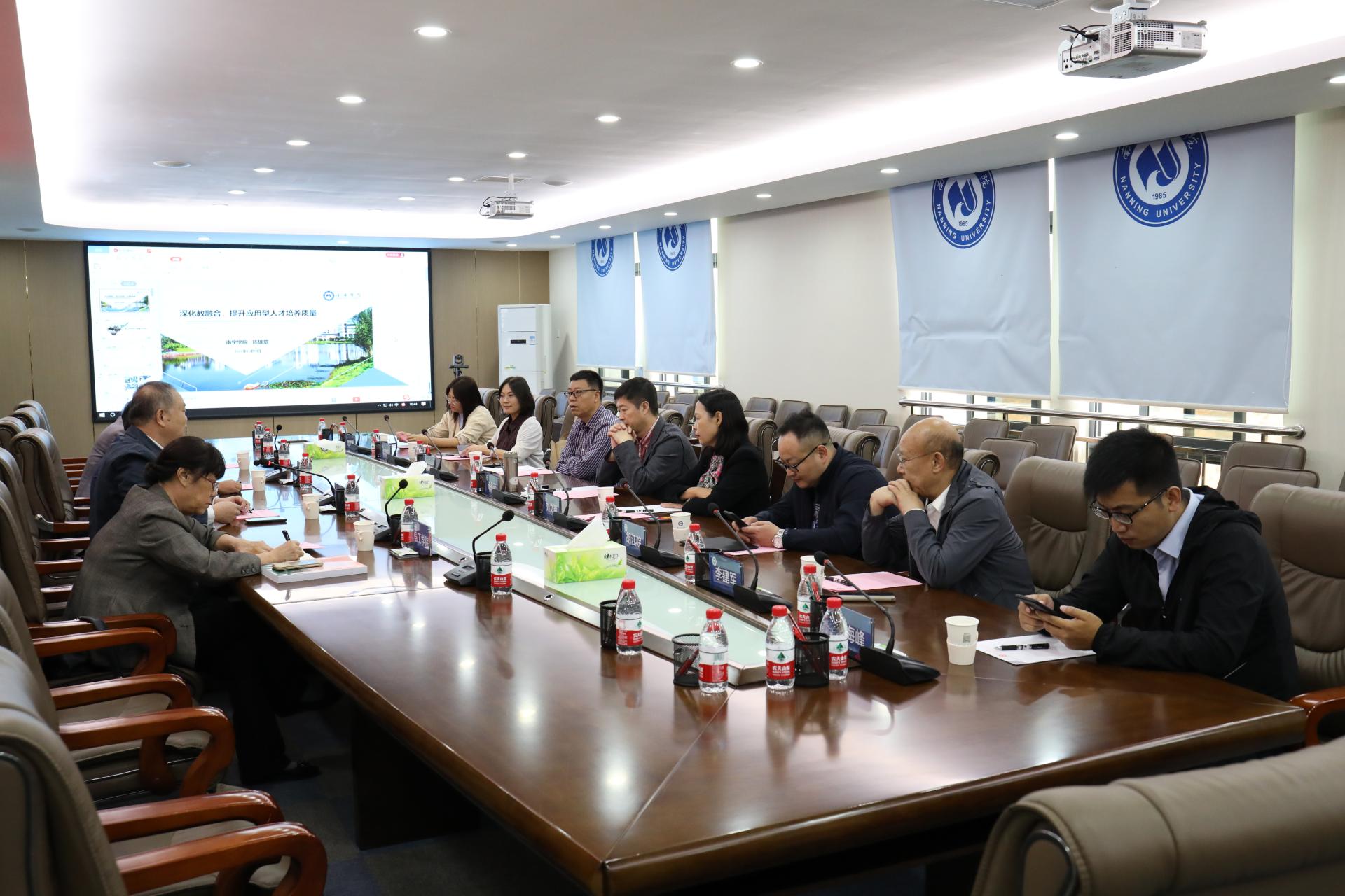 陈雄章副校长《深化产教融合,提升应用型人才培养质量》报告,从南宁学院产教融合的制度设计、产教融合的基本形式、产教融合建设路径、产教融合建设产业学院、产教融合的效益等方面介绍了学校近年来在产教融合、校企合作情况。双方就校企合作、教学创新等问题展开探讨。