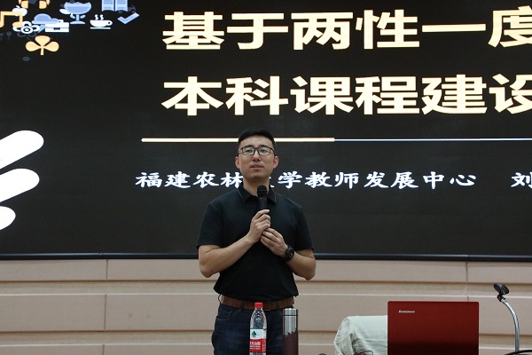 报告中,刘学莘副教授结合多年的课程改革经验,一流课程申报、建设心得,用形象生动的语言,详实的案例,分别对教育部一流课程相关政策文件、一流课程各类课程类型评审标准进行解读。随后,他以主持的《家具结构设计》课程就线上线下混合式一流课程申报、建设做案例分析。会上,刘学莘副教授还就一流课程申报书的撰写原则及说课视频录制的注意事项做介绍。