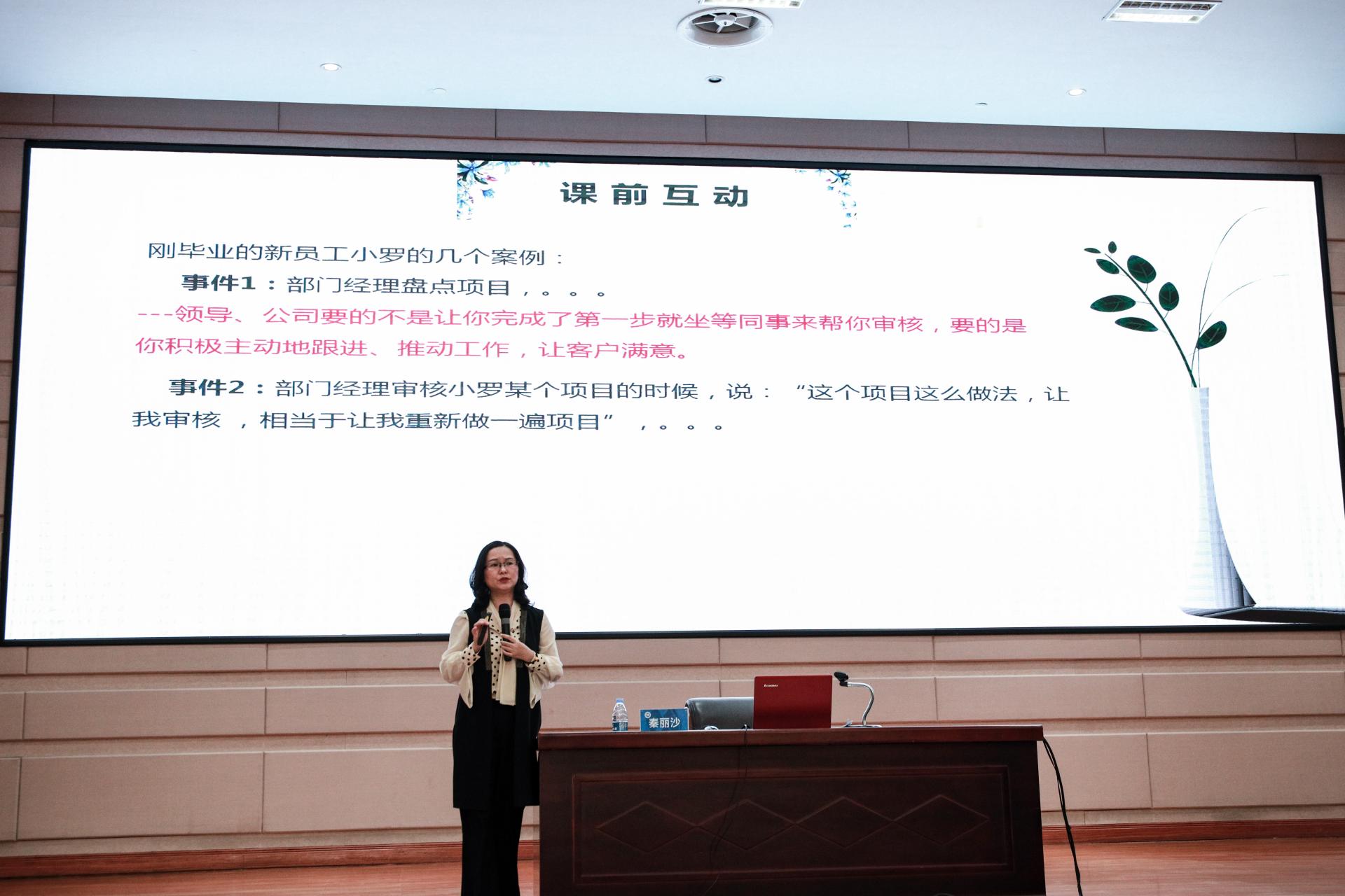 秦丽沙老师首先通过三个真实案例件引入主题,针对职场新人易犯的错误进行了介绍和分析。缺乏观察和思考,缺少主观能动性和责任感等,是毕业生初入职场时的常见问题。接着,秦丽沙老师从“表面的”和“深层的”两个方面阐述了“试用期受欢迎的两种人”;并向同学们详细剖析了受欢迎的职场新人的十种特质,强调了思考力、执行力、专注力,创新性、主动性和可靠性等特征在毕业生适应职场、提升个人职场价值中的重要作用。讲座中,秦丽沙老师结合了丰富的实际案例和影视素材,实用性与趣味性并存。