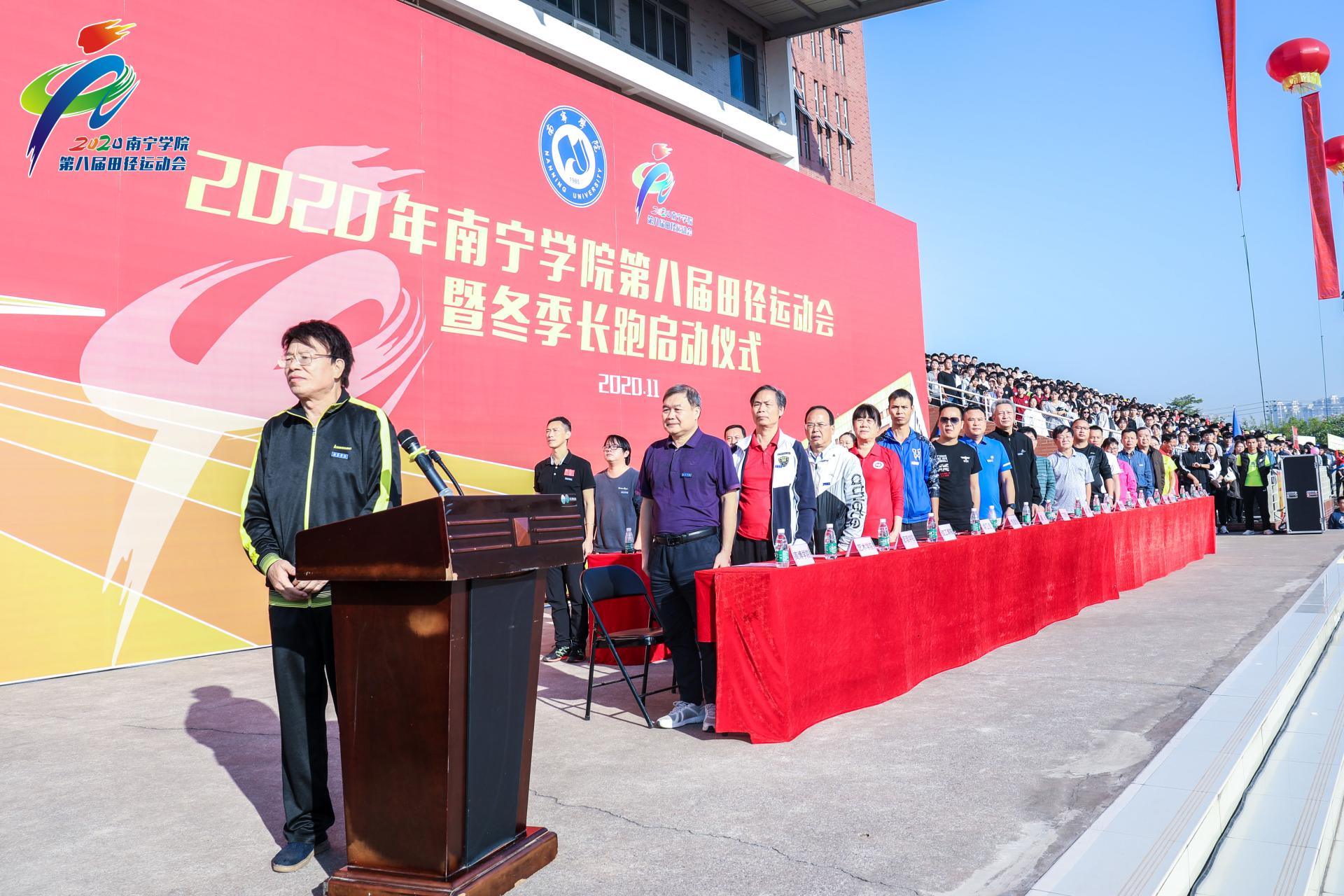 11月12日,学校第八届田径运动会开幕式暨冬季长跑启动仪式开幕式在学校田径场举行,学校党委书记刘彪,副校长文旭光、李陶深、龚击,财务总监韦典,各单位、各学院负责人,全体运动员、裁判员参加开幕式,开幕式由党委副书记、纪委书记覃存民主持。