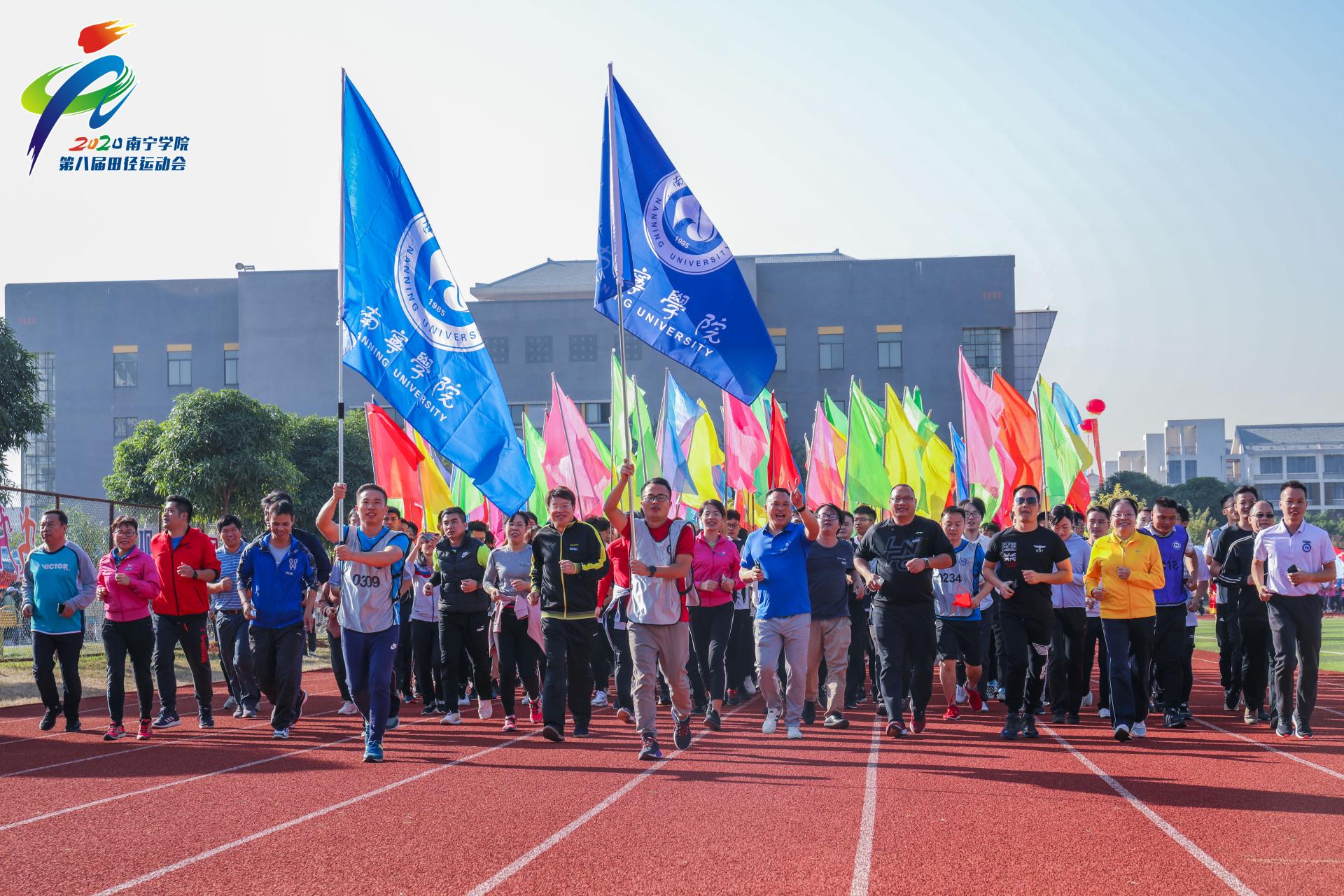 精彩的文体表演结束后,学校党委书记刘彪鸣枪发令宣布本届田径运动会暨冬季长跑活动开幕,师生代表环校起跑。在覃存民副书记和龚击副校长的带领下,1000余名运动员代表沿校园主干道进行千人环校跑。校园里奔跑中的五彩队伍犹如一条长龙,彩旗飘飘如一片彩色的海洋,让人欢欣鼓舞。