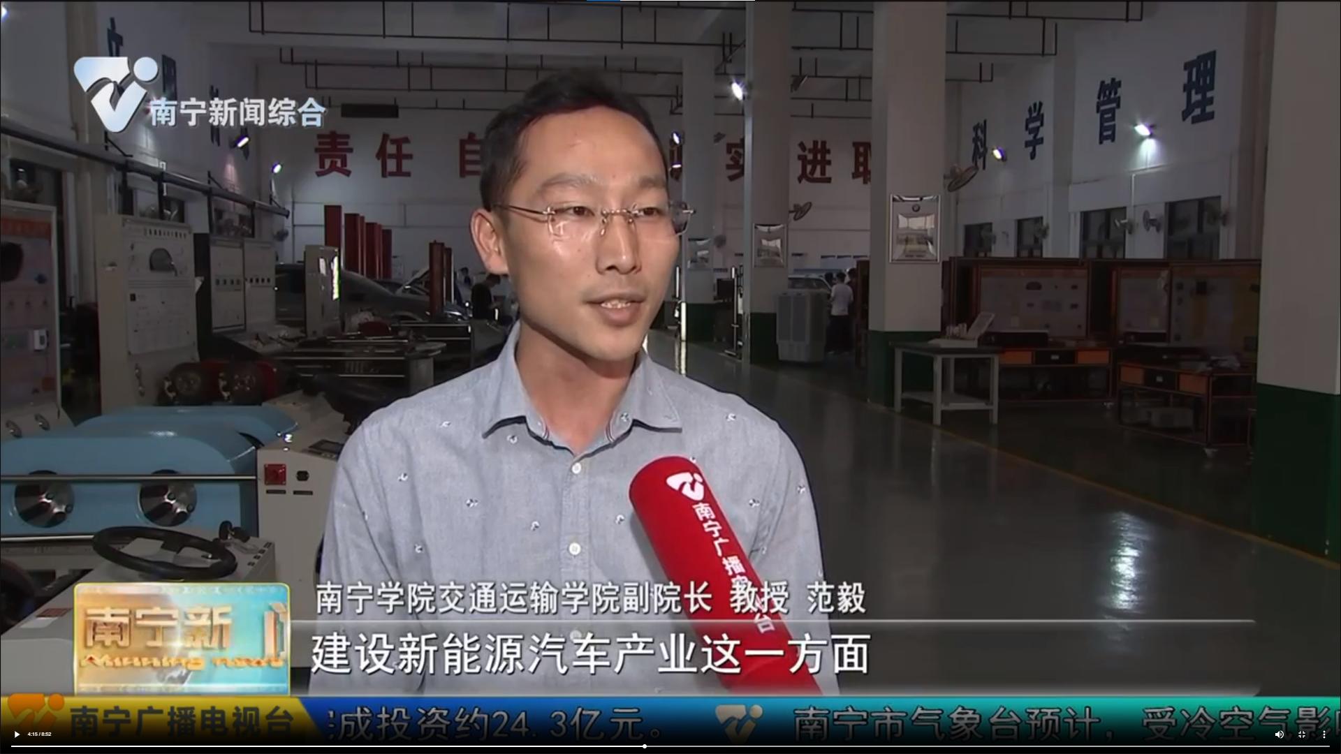 南宁电视台在《深入贯彻落实习近平总书记对广西“五个更大”重要要求特别报道》中对南宁学院为南宁市新能源汽车产业人才的培养进行报道