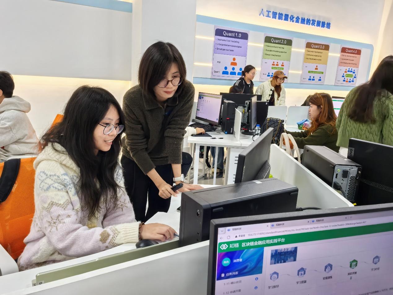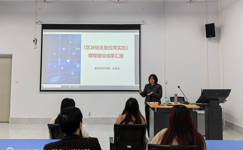 为深化教学改革,展现课程建设成效,强化理论与实践的融合育人实效,12月24日下午,数字经济学院《区块链金融应用实践》公开课暨课程建设成果汇报在新文科大楼104教室顺利举行。本次活动由数字经济学院教师王珍珍主讲,2023级金融科技1班全体55名学生及学院各教研室专任教师参与,课程建设成果分享环节于课后有序开展。