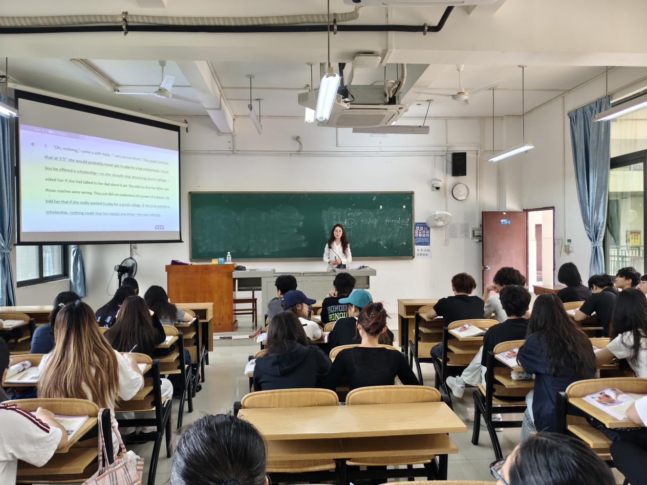 本次公开课以2025级视觉传达设计5班学生为授课对象,由孙迅老师进行《大学英语BⅡ》课程教学展示。孙迅老师以多媒体素材为载体,以小组互动为主要课堂组织方式,将语言学习与项目产出进行结合。课程中引入了多种学生活动,重点训练了学生的英语实用技能。