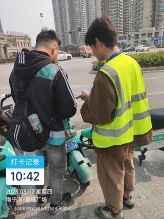 学生在开展互联网自行车满意度调查