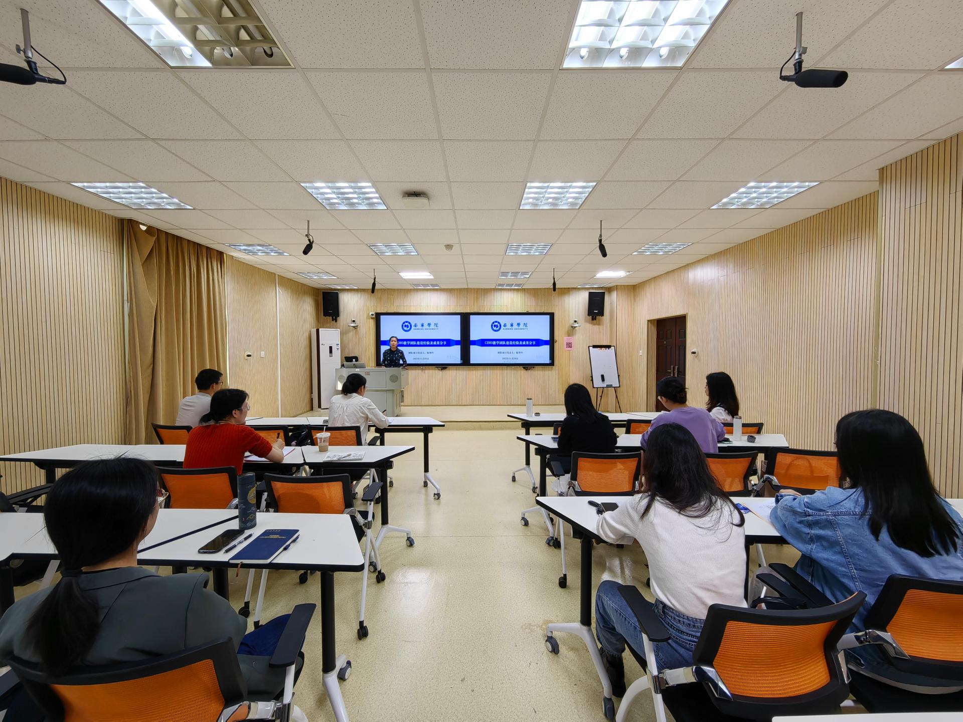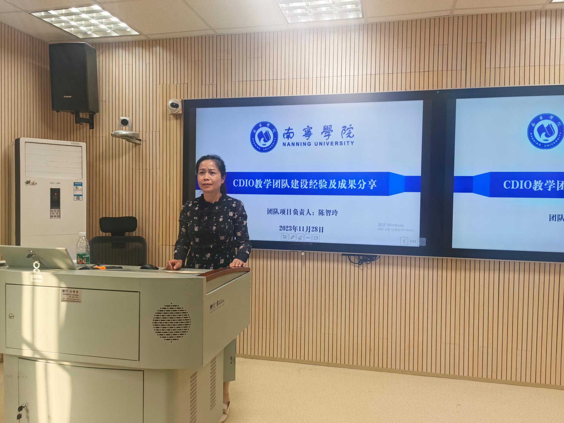 在本次沙龙活动中,CDIO教学团队负责人陈智玲老师和团队成员杨汉宁老师分享了他们在CDIO教学团队建设中的实践经验和成果。分别从教学团队的组建、建设成果、教改经验、不足之处、总结思考等方面进行了深入探讨。