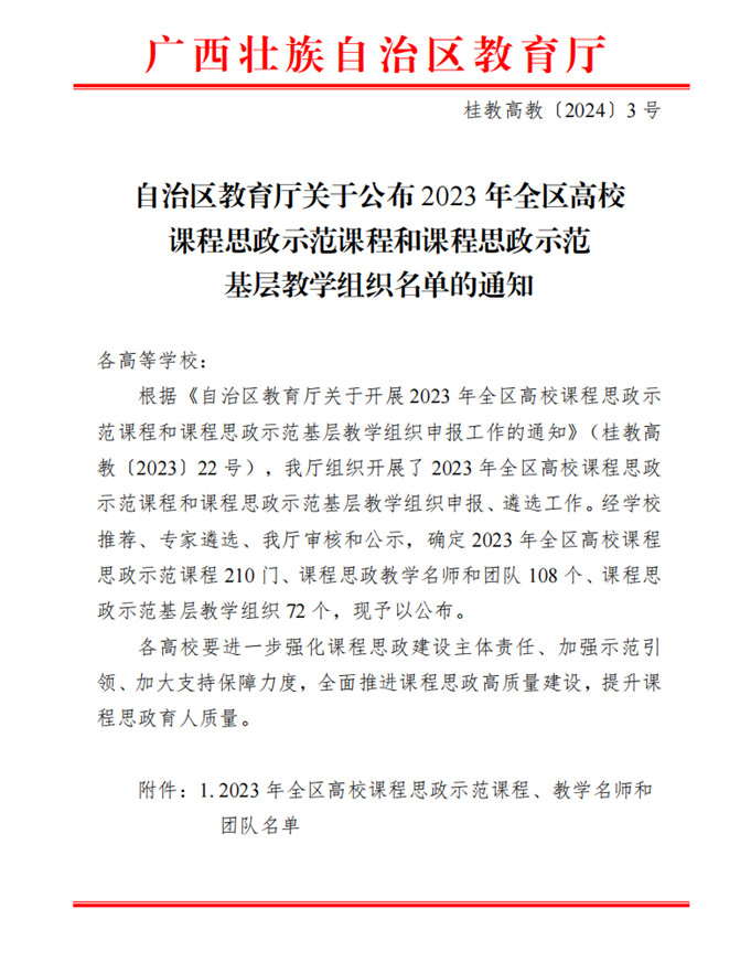 【喜讯】南宁学院4门课程入选2023年自治区级课程思政示范课程