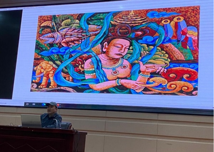 为了让学生结合广西本土文化,让学生真真切切的体会如何将广西少数民族元素之美转换成装饰图案,再从装饰图案转化成为艺术作品,工艺美术专业结合装饰图案课程邀请了广西艺术学院的一级教授陆红阳教授作专题讲座,通过他丰富的个人教学经验以及对自己多年的专业作品的解析,从广西与东盟民族文化的入手从设计元素的提取到再设计,从不同图案的组合到色彩的选取,每一步都为学生进行了非常详细的讲解。相信在卢红阳教授的讲授中,学生一定能感受到广西少数民族艺术之美,也能学习到我们如何利用自己的民族文化运用装饰艺术的语言讲好属于我们自己的故事。(艺术与设计学院供稿 /阎雪 图/王春伟)