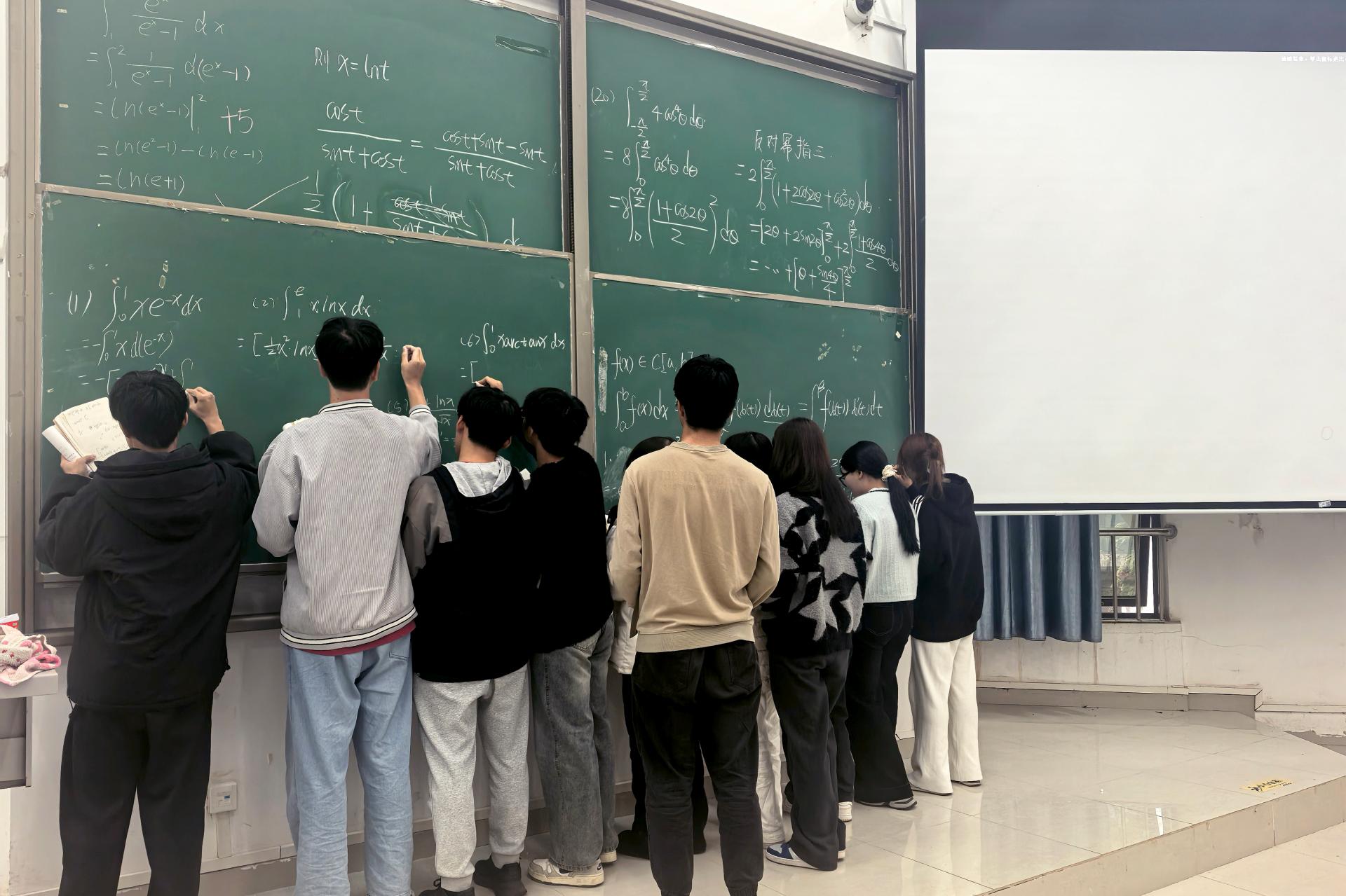 高数课上学生主动积极板演的现场